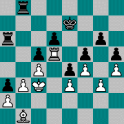 1.e4 c5 2.Nf3 d6 3.d4 cxd4 4.Nxd4 Nf6 5.Nc3 e6 6.g4 h6 7.h4 Be7 8.g5 hxg5 9.Bxg5 Nc6 10.Qd2 a6 11.O-O-O Bd7 12.f4 Nxd4 13.Qxd4 Bc6 14.Rg1 Qa5 15.Bh3 Qc5 16.Qd3 b5 17.f5 b4 18.Be3 Qa5 19.Qc4 Bb7 20.fxe6 bxc3 21.Rxg7 d5 22.Qb3 cxb2+ 23.Kb1 Qb5 24.exf7+ Kf8 25.Rdg1 Qxb3 26.Bh6 Ng4 27.Rh7+ Nxh6 28.Rxh8+ Kxf7 29.Rh7+ a černý se vzdal
