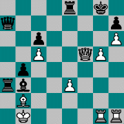 1.e4 e6 2.d4 d5 3.Nc3 c5 4.Nf3 Nc6 5.exd5 exd5 6.Be2 Nf6 7.O-O Be7 8.Bg5 O-O 9.dxc5 Be6 10.Nd4 Bxc5 11.Nxe6 fxe6 12.Bg4 Qd6 13.Bh3 Rae8 14.Qd2 Bb4 15.Bxf6 Rxf6 16.Rad1 Qc5 17.Qe2 Bxc3 18.bxc3 Qxc3 19.Rxd5 Nd4 20.Qh5 Ref8 21.Re5 Rh6 22.Qg5 Rxh3 23.Rc5 Qg3 a bílý se vzdal