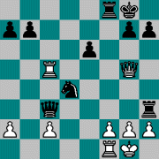 1.e4 c5 2.Nf3 d6 3.d4 cxd4 4.Nxd4 Nf6 5.Nc3 e6 6.g4 h6 7.h4 Be7 8.g5 hxg5 9.Bxg5 Nc6 10.Qd2 a6 11.O-O-O Bd7 12.f4 Nxd4 13.Qxd4 Bc6 14.Rg1 Qa5 15.Bh3 Qc5 16.Qd3 b5 17.f5 b4 18.Be3 Qa5 19.Qc4 Bb7 20.fxe6 bxc3 21.Rxg7 d5 22.Qb3 cxb2+ 23.Kb1 Qb5 24.exf7+ Kf8 25.Rdg1 Qxb3 26.Bh6 Ng4 27.Rh7+ Nxh6 28.Rxh8+ Kxf7 29.Rh7+ a černý se vzdal
